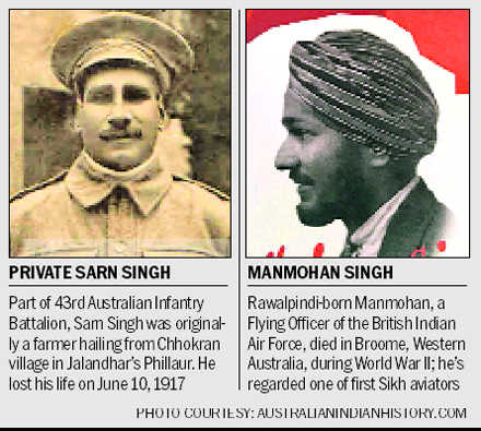Son of zaildar Kishan Singh, he enlisted in the Australian Imperial Force in Adelaide in May 1916. Three months later, this pint-sized Punjabi—described as “63.25 inches tall, 136 pounds in weight, chest 34 to 36 inches”—was sent to the UK. Fighting in one of the bloodiest battlefields of WWI, he lost his life on June 10, 1917. He was posthumously awarded the British War Medal and the Victory Medal, which were given to his widow, Partap Kaur, in 1922. “The Australian Sikh Heritage Association (ASHA), along with local South Australian Sikhs and the wider Australian community, is organising a special commemorative event in Adelaide on June 10 to remember Private Sarn Singh’s ultimate sacrifice,” says a statement issued by ASHA, whose team includes Harjit Singh, Kuljit Kaur Jassal and Tarunpreet Singh.Earlier this month, the association had commemorated the 75th death anniversary of Manmohan Singh, a Flying Officer of the British Indian Air Force who died in Broome, Western Australia, during World War II. Rawalpindi-born Manmohan, regarded as one of the first Sikh aviators, had served as the chief pilot for Maharaja Bhupinder Singh, the then ruler of the Patiala princely state. When WWII broke out, he was picked as the leader of an Air Force batch of pilots sent to England for training and active duty. As the oldest of the group, he was fondly called chacha (uncle). Manmohan was known to have a cold shower every morning and not eat anything until he had recited the Japji Sahib. He was killed in a Japanese air attack on the Broome harbour on March 3, 1942. The pilot has been immortalised on the ‘Memorial Wall to the Allied Dead of World War II in Northern Australia’ in Darwin, while Private Sarn Singh’s name is inscribed on the war memorials in Adelaide and Canberra and the Menin Gate in Ypres (Belgium).
